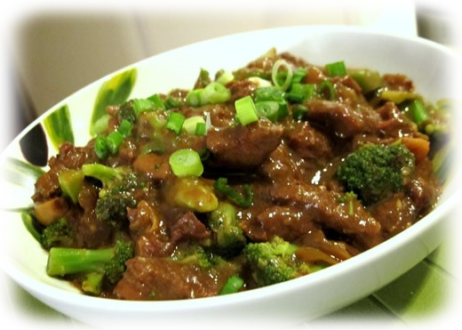 10.5 oz sliced lean beef 10.5 oz broccoli 1 Tbsp soy sauce1 tsp corn flour 1 tsp sherry (or white wine) ½ tsp salt1 clove garlic, minced 1 slice ginger, minced 1 scallion, sliced thin4 Tbsp oil (divided)Directions:Cut the broccoli into bite-sized pieces and mix them with 2 Tbsp of oil. Cover with plastic wrap.Marinate the beef with soy sauce, sherry (or wine), garlic, ginger, scallion, and corn flour for at least 15 minutes. Add 2 Tbsp of oil and mix. Cover with plastic wrap and microwave on high for 3 minutes.Add broccoli and salt. Stir to mix. Cover with plastic wrap and microwave on high for 2 minutes.Serve over white rice if desired.